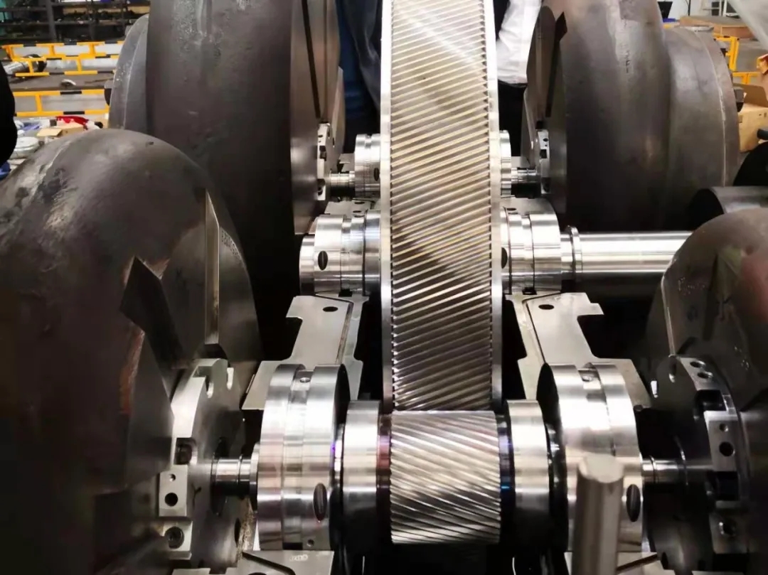 The original gearbox was designed and manufactured by COOPER, a company from the United States. The model is COOPER AE-100, used in the gas industry for air compressors. It is a six-stage expansion compression system that pressurizes and separates oxygen and nitrogen from the air through deep cooling. The user sent it to our company in November 2020 for maintenance. We disassembled and inspected the components, replaced the large gear and gears for stages 3 to 6. Before leaving the factory, we conducted empty-load and load simulation tests. The replacement parts were well matched with the original components, and all performance indicators met the technical agreement requirements.